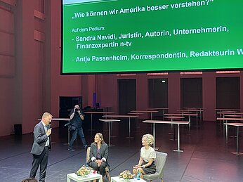 mit der bekannten Juristin, Autorin und Finanzexpertin Sandra Navidi zuhören und Fragen stellen.